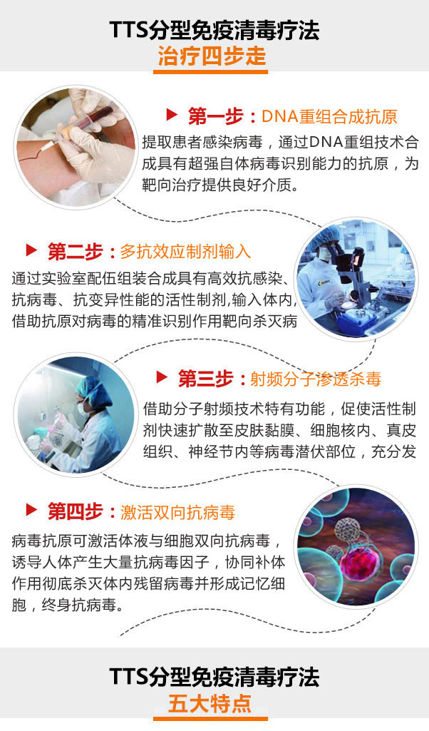 TTS分型免疫清毒疗法,是在国际认证过的技术,无论从科研实力、医资配备都在国内首屈一指,是目前唯一能够透彻治疗湿疣、疱疹,杜绝反复的技术!